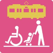 ベビーカーや車いすで移動しやすい、各駅のバリアフリー設備と列車内のフリースペース・優先席の位置を視覚的に表示します。